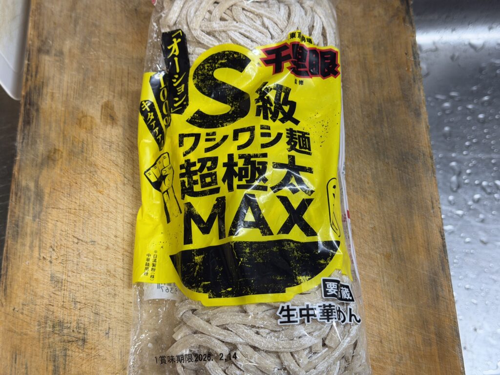 で、実際に作ってみたのですが、麺はこちらの「S級ワシワシ超極太MAX」という麺を使いました(^^;。