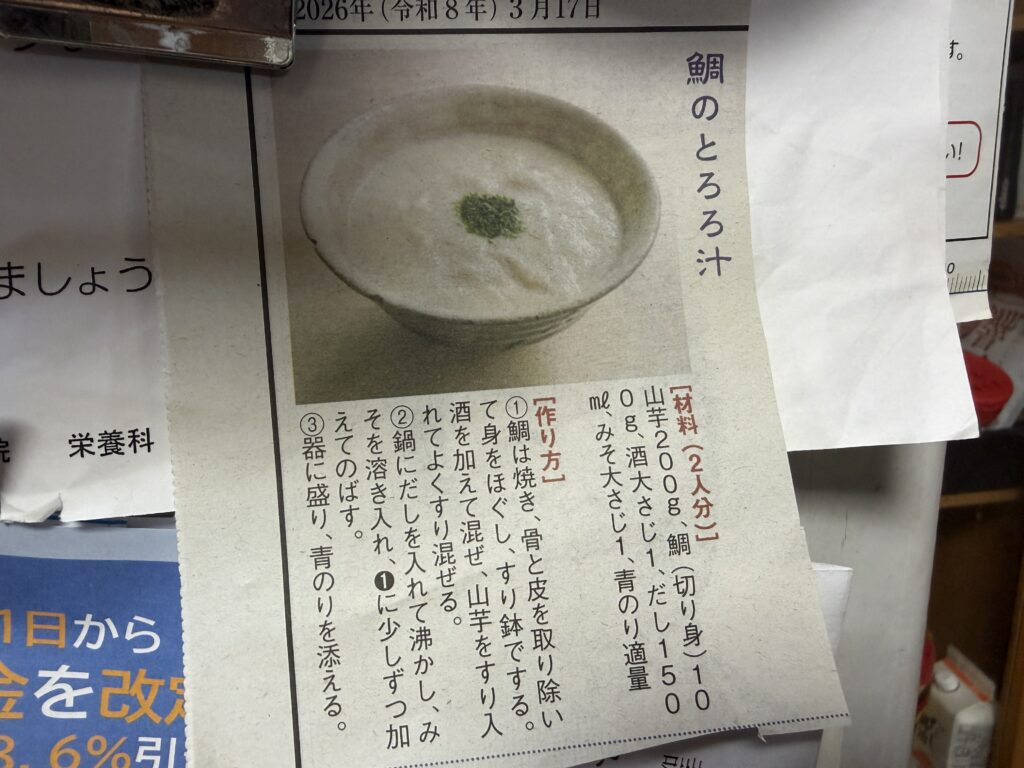 先日、お袋が新聞の切り抜きを、冷蔵庫に貼り付けていました。