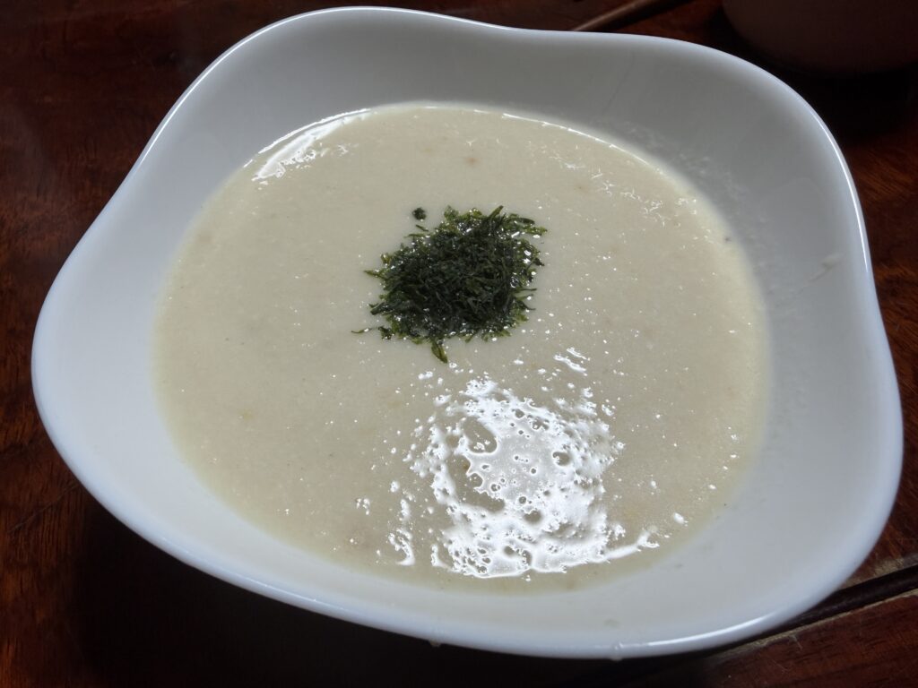 んで、その間にレシピ通り具なしの味噌汁を作りながら山芋を摺り下ろしておきます。