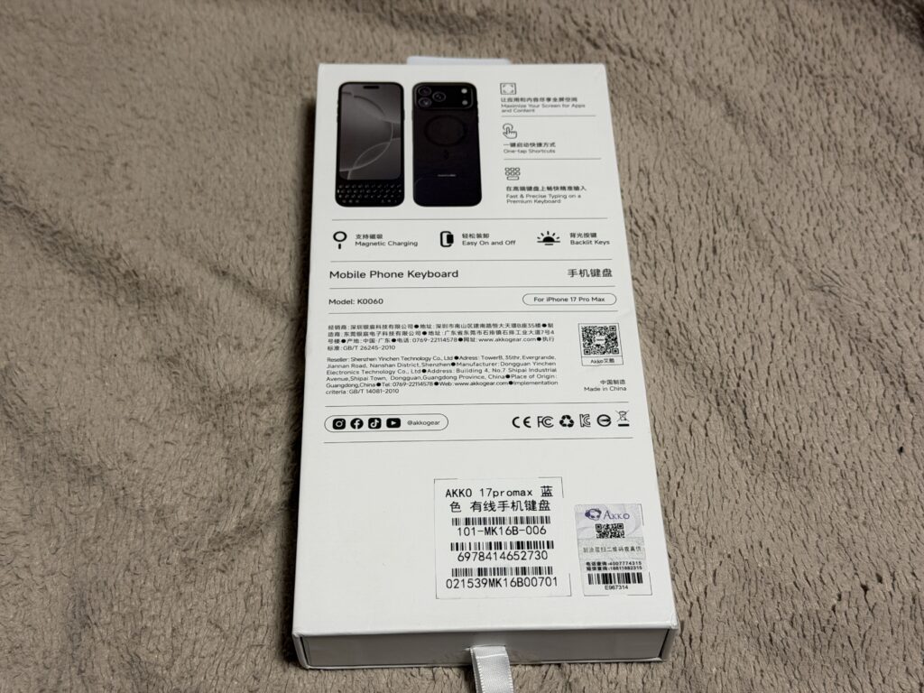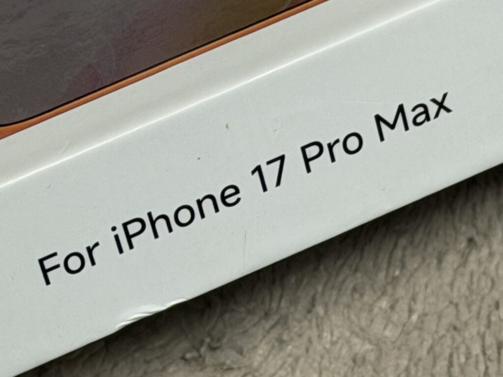 箱の左下、側面にはしっかりと「iPhone 17 Pro Max」の印刷が見えます( ^o^)ノ。