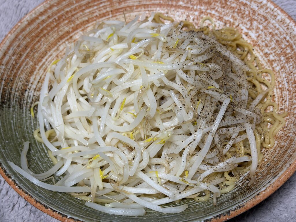 もやしを茹でるだけで十分具材になるので、夜食にもぴったり( ^o^)ノ。