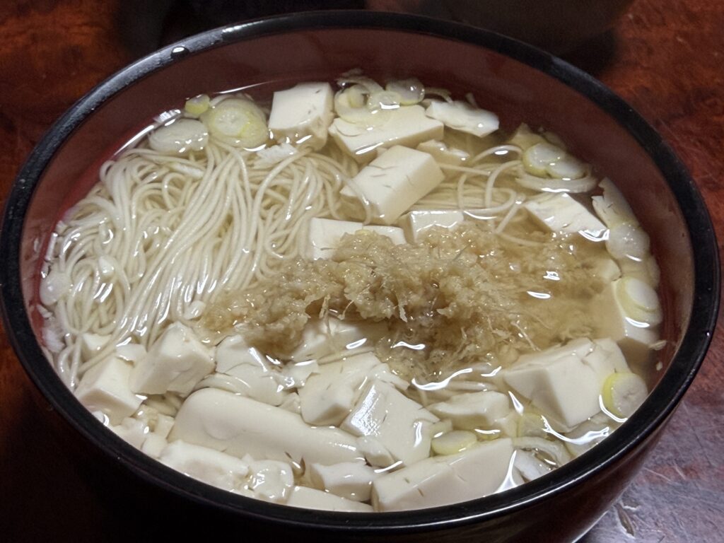 お袋意外には生姜と葱を入れましたが、お袋にはつゆと豆腐、それにそうめんのみ。