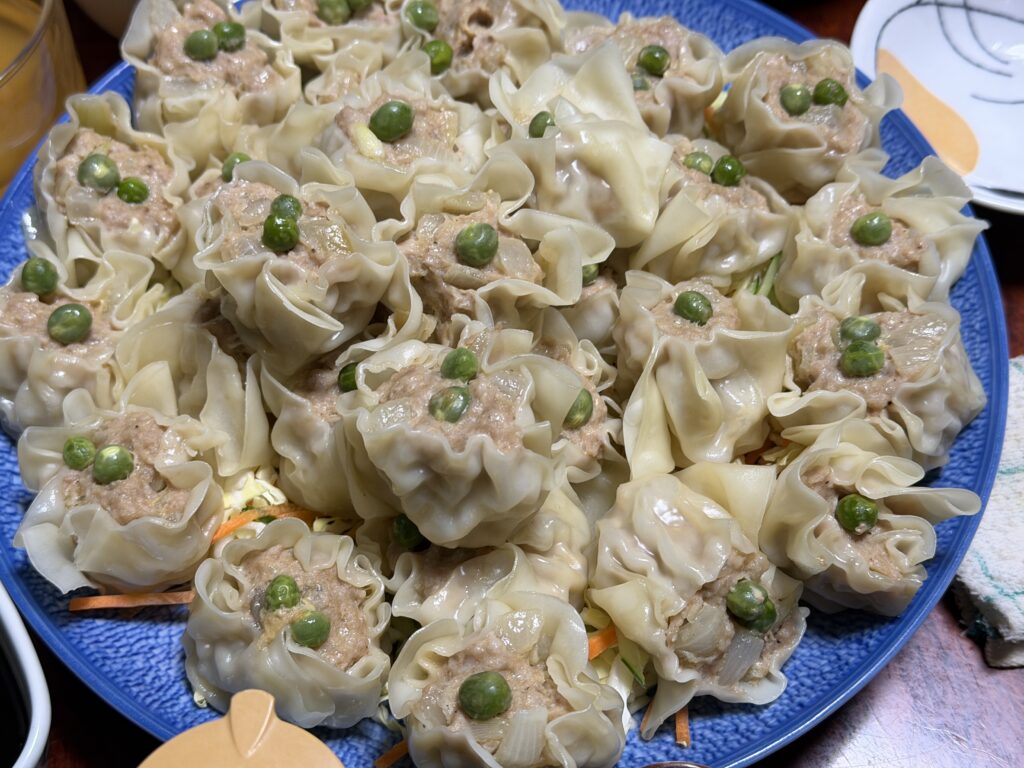 餃子と違って、焼売の場合は挽肉をよぉ~く練るので手間がかかるのですが、自家製の焼売って、美味しいんですよね…お腹いっぱい食べられるし( ^o^)ノ。