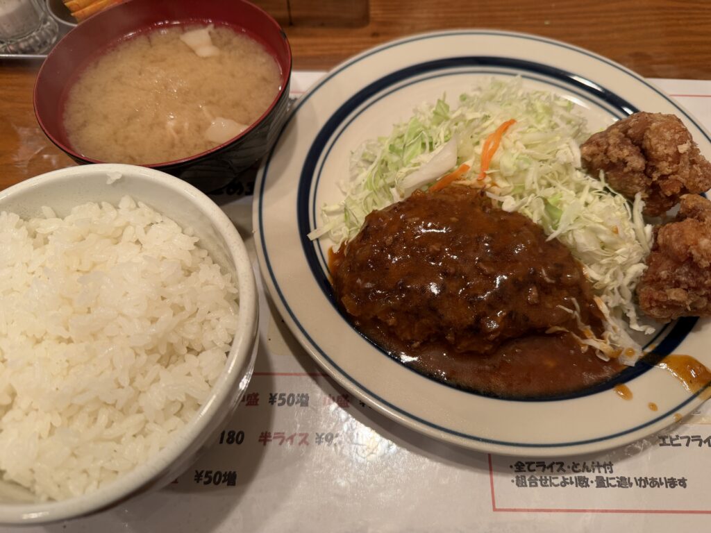 そして、私より先に、カミさんの「ハンバーグとカラアゲ」が到着。