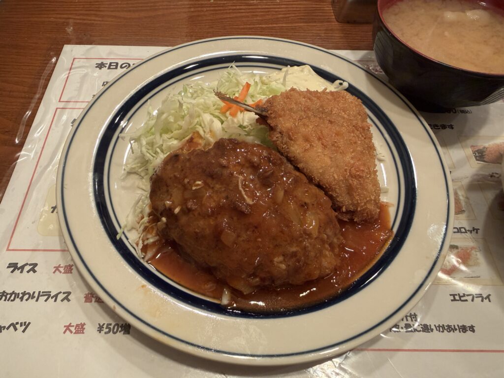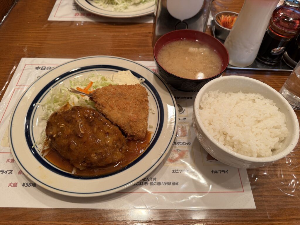 人形町 キッチンサウザ 「ハンバーグと魚フライの定食」