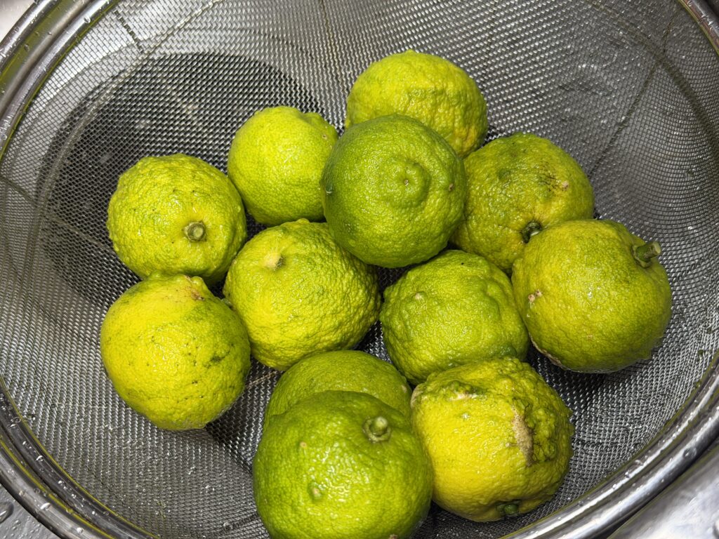 で、採った柚子を持ち帰って、早速軽く洗いました。