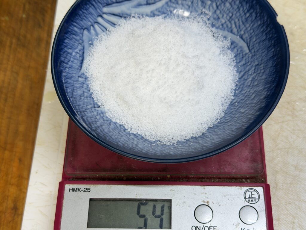 塩は、柚子と唐辛子を合わせた重量の約20%ほど使用します。