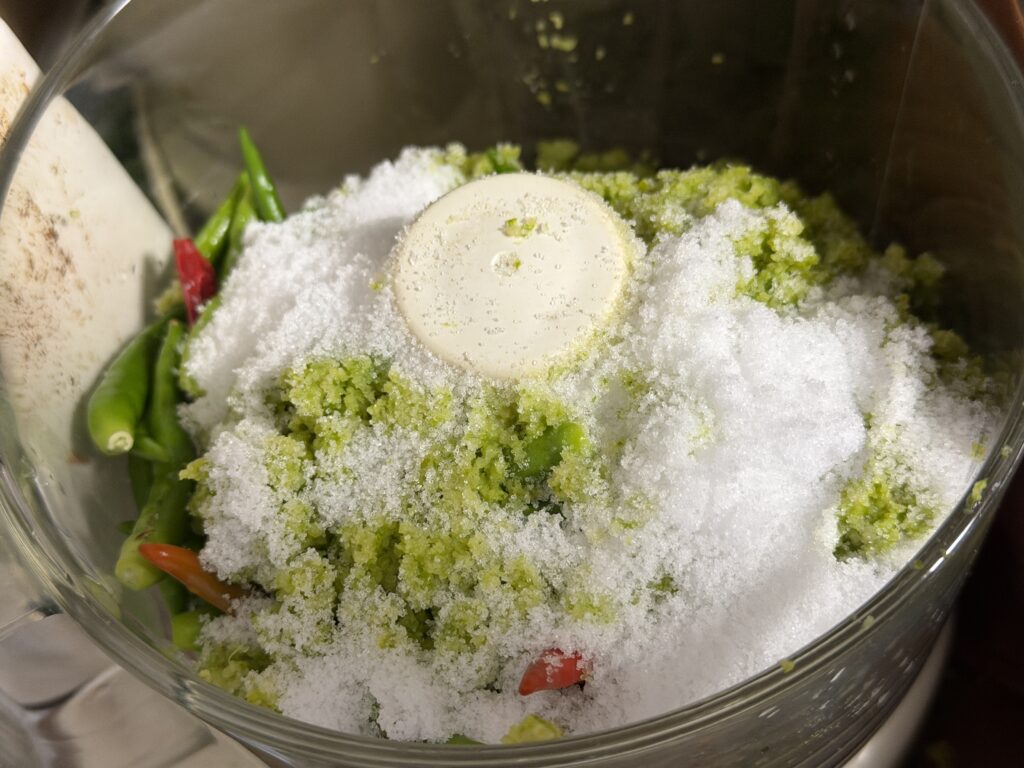 これら全てをフードプロセッサーに放り込んで、一気にかき混ぜていきます(^^;。