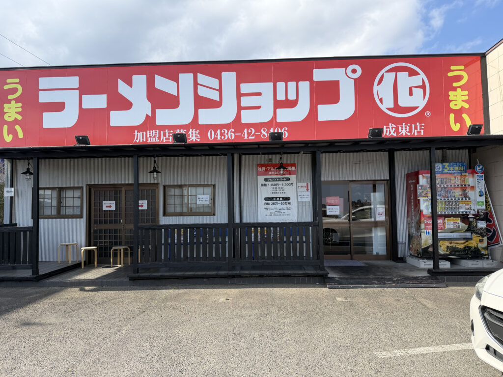 最後のご奉公かなぁ…と思って成東に向かうと、その道すがら、以前は『恵比寿ブタメン』さんが入っていた場所に「ラーメンショップ○化 成東店」が入っていました( ^o^)ノ。