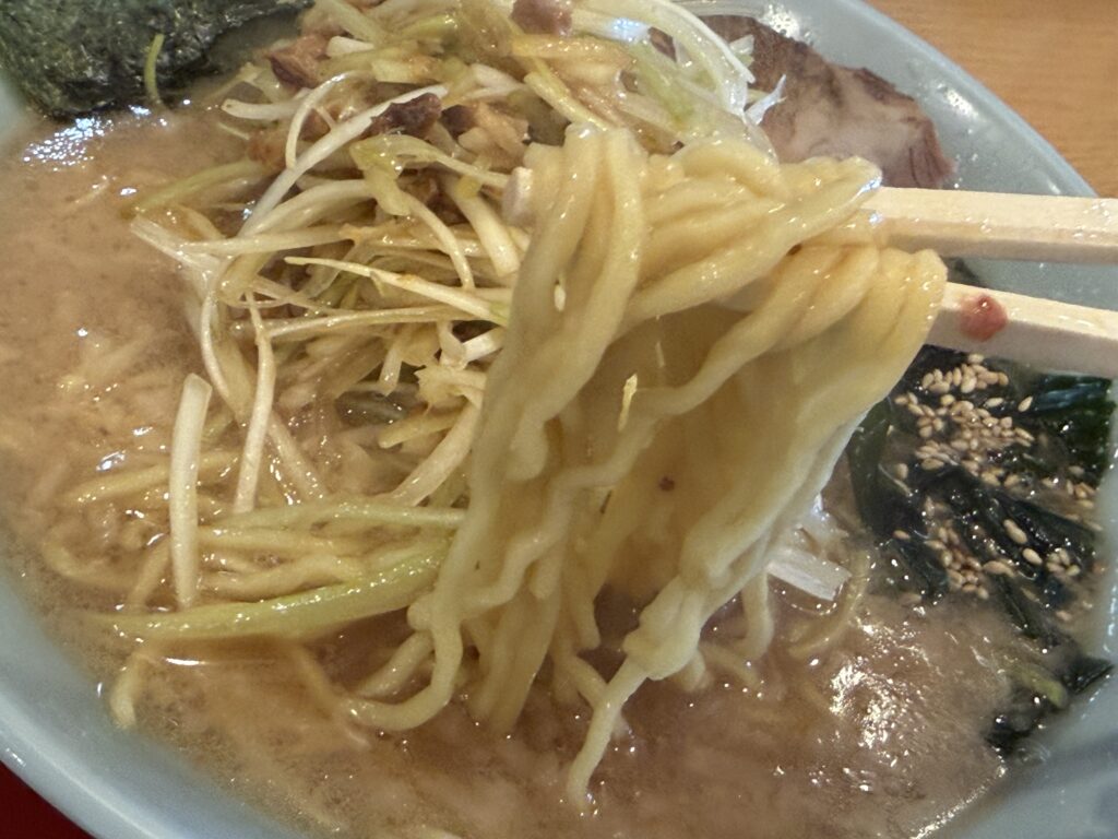 個人的な経験から、ラーショの麺は少し柔らかめで、ちょっとだけぬるっとした食感があるとが普通だと思っていたのですが、こちらの成東店さんの麺は小気味よいコシがあって、麺の表面もさらっとしています。