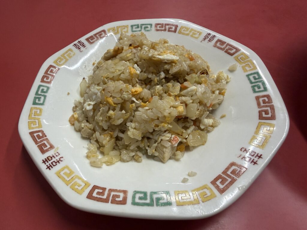 この半チャーハンを作るためだけに中華鍋を振るうわけです。多めに作っておいてそれを小出しにするようなことはせず、都度出来たてを提供。