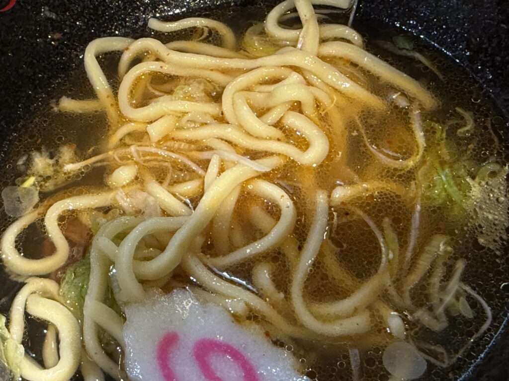 熱々の太麺はもっちりとした食感で、食べ応えはもちろんですが、純粋に食感が良いです!