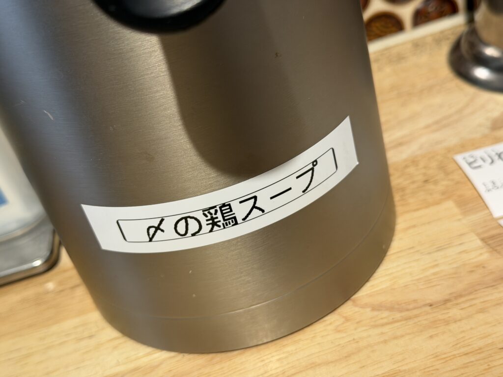 テーブルに置いてある「〆の鶏スープ」なるものを、麺を一口だけ残した丼に注ぎい入れ、ラーメンのようにしていただきます( ^o^)ノ。
