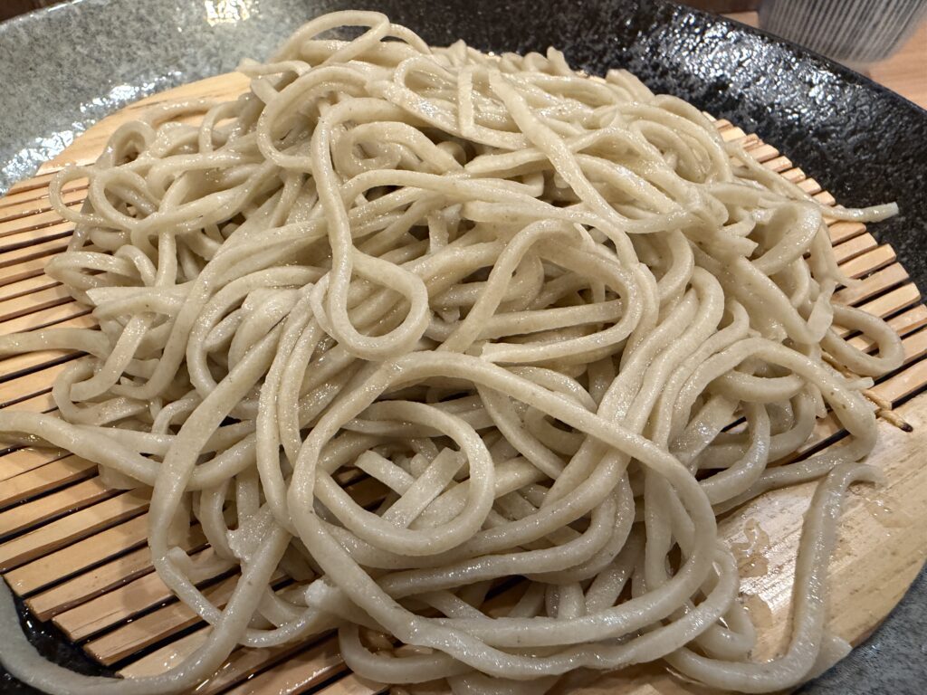 蕎麦は見た目の太さからもバッチリ感じる、強すぎるほどのコシ。
