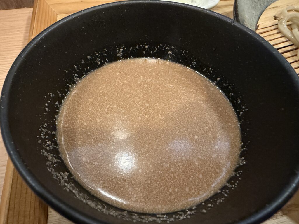 そば湯を頂いたのですが、個人的にこのくるみつゆは、そば湯で伸ばすのではなくそのまま口に含んで、じんわりと味わうのが美味しいと思いました。