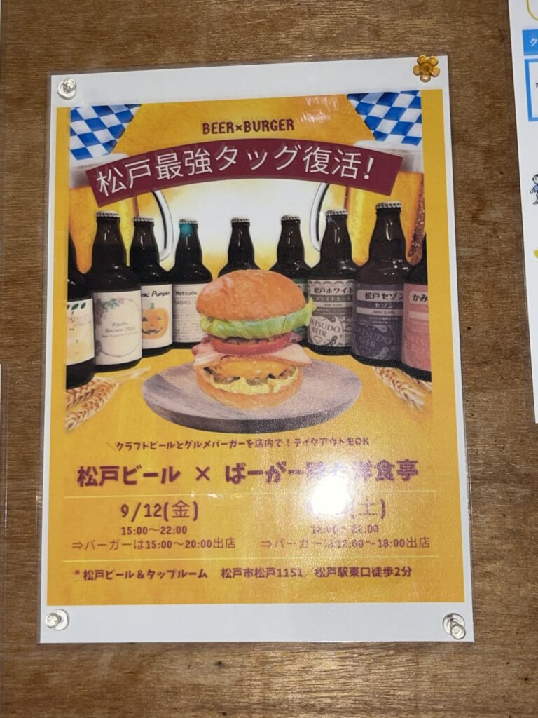 新八柱の『ばーがー時々洋食亭』さんが、松戸駅東口の『松戸ビール』さんとコラボして、期間限定で『松戸ビール』さんにて間借り営業をしていました( ^o^)ノ。