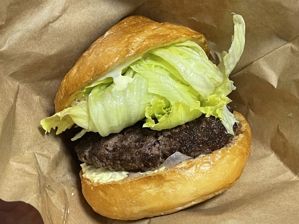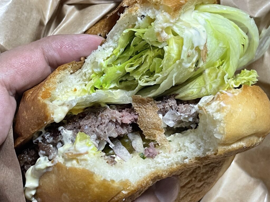 幾重にも折りたたまれたジャクジャクのレタスと合わさって、あっさりとしつつも肉の美味さがガツンッと味わえる、シンプルにして過不足ない、メチャクチャ美味しいバーガーでした( ^o^)ノ。