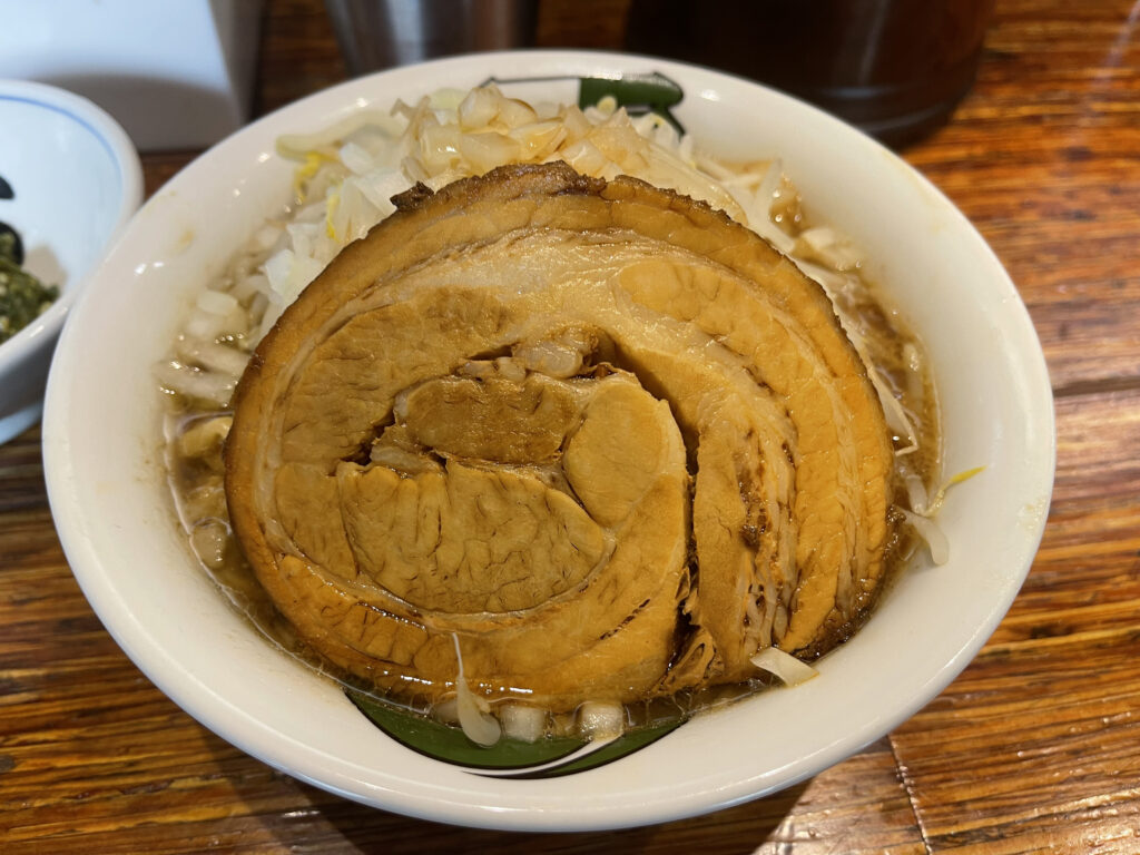 目の前から差し出されたのは、巨大なチャーシューがデンッと鎮座するラーメン( ^o^)ノ。