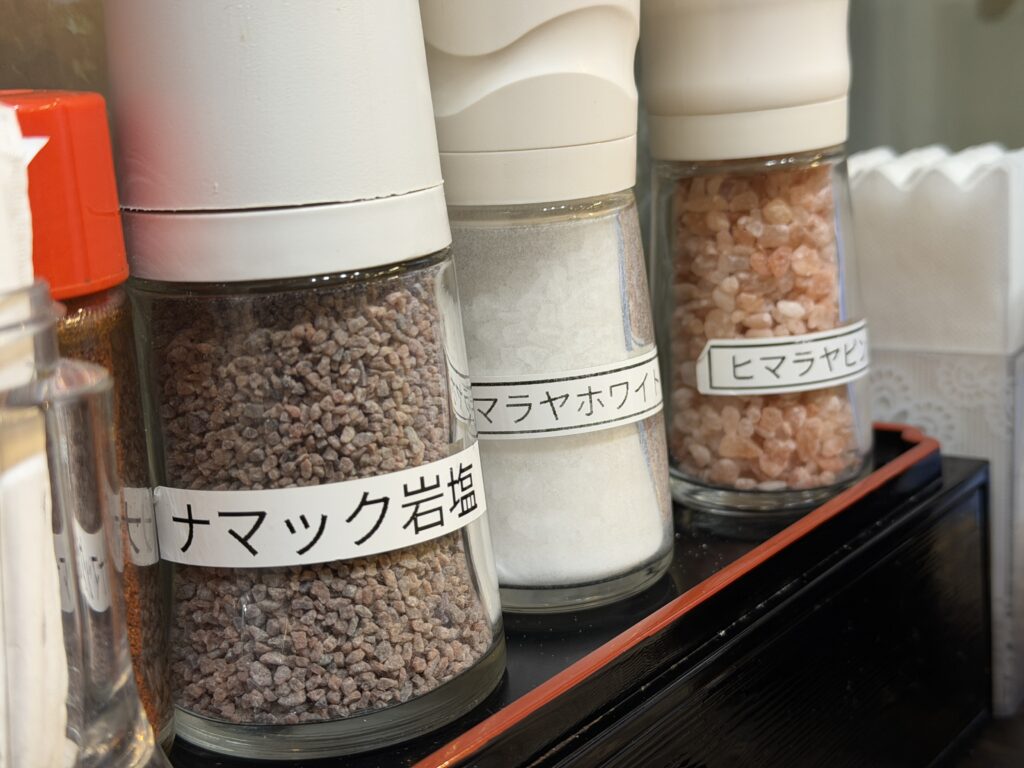塩はヒマラヤピンクソルト、ヒマラヤソルト、そしてナマック岩塩が用意されています。