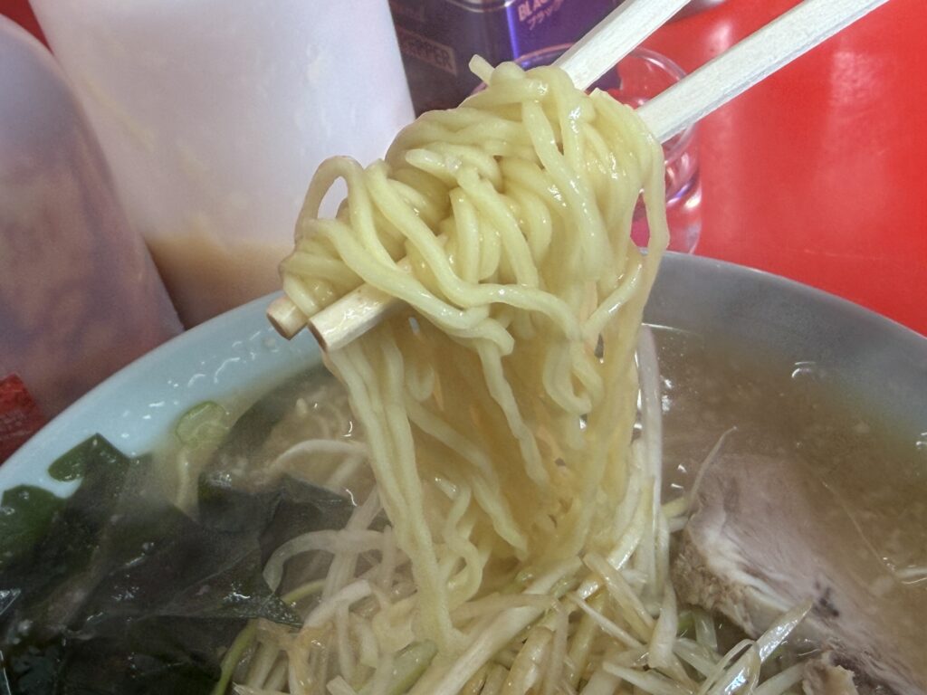 実はこの日、麺の量を中盛りにしたのですが、麺が細麺だったせいで茹で汁がいつもより多めに入ってしまい、結果としてスープが薄く感じたのかな…と思いましたが、ちょっと残念でした(^^;。