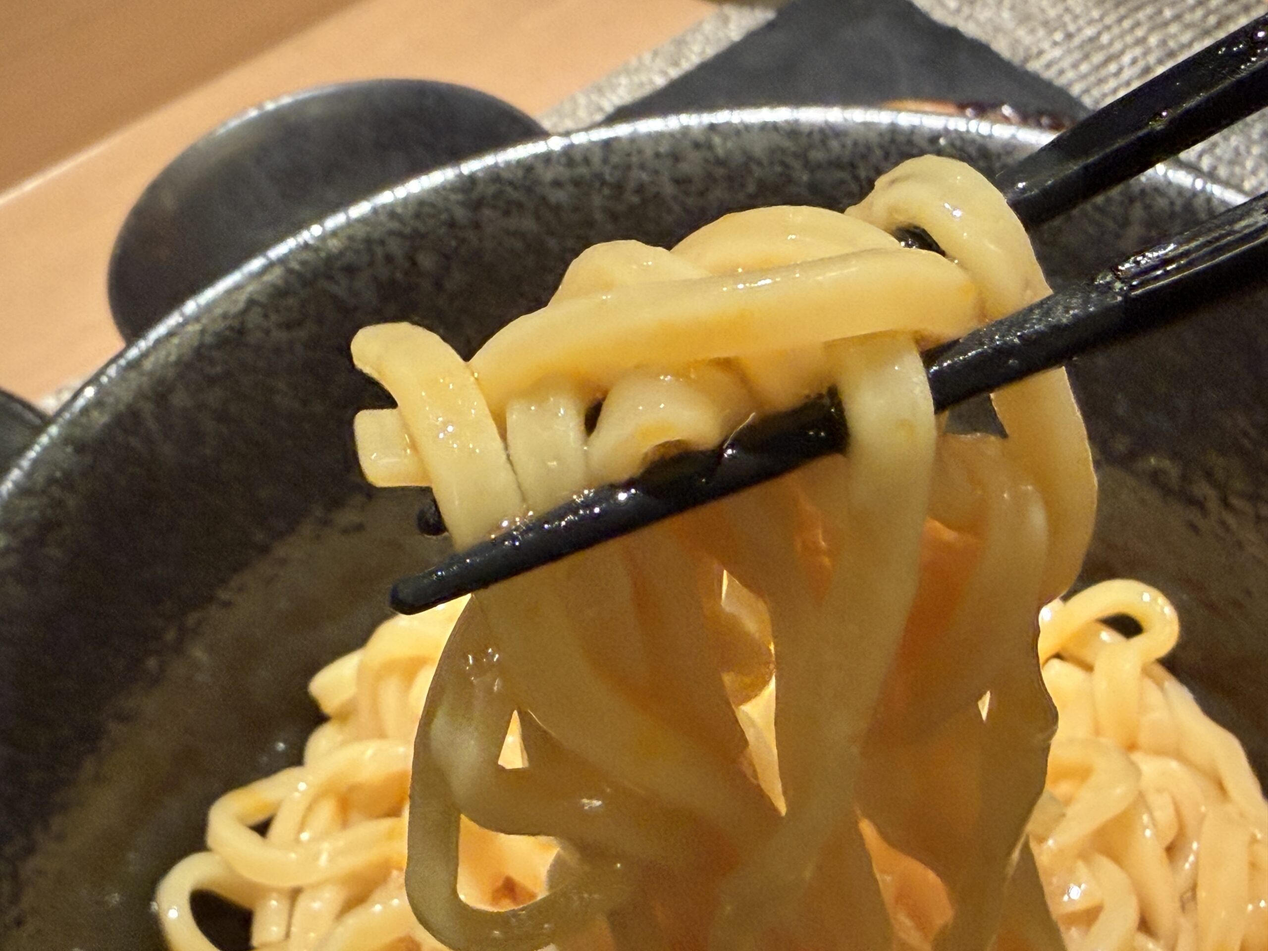 ただこの日は少し茹で時間が長いのか、それとも気温や湿度のせいなのか、前回食べたときよりかは麺の肌というか表面というか、少し水分を纏いすぎているような感じで、ちょっと水の味がするなぁ…と思いました。