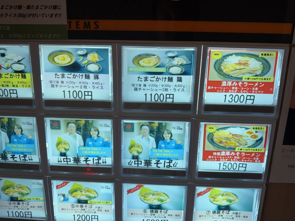 食券機の前に立って何を食べようか考えるのですが、ここはやっぱり名代の「たまごかけ麺」を食べるべきですよね…( ^o^)ノ。