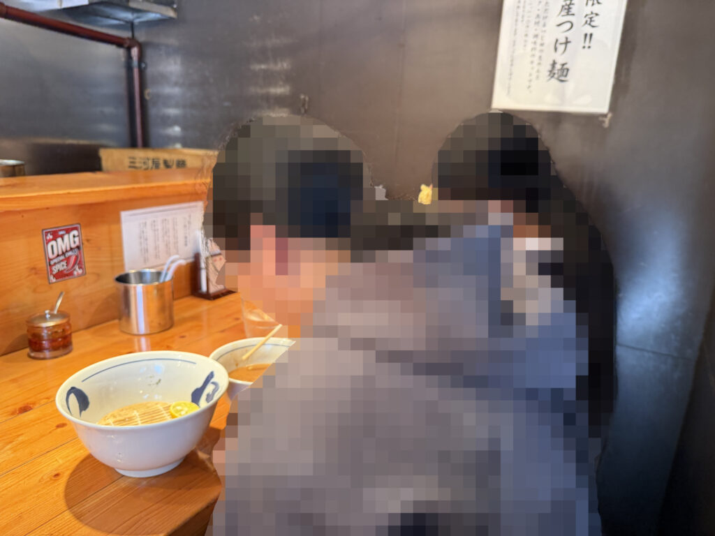 お店に着いて、早速店外の食券機で各々が食べたいモノを選びますが、どうも二人とも萎縮してしまって、あまり高いものは頼めないようで、最終的には普通に「つけ麺」を選択(^^;。