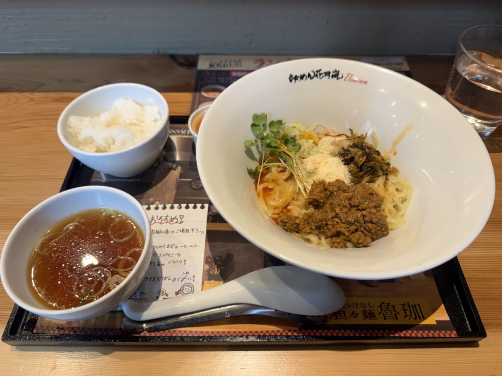 ちょっと気になって、生卵とライスがセットになっている「担々麺魯珈」の「ロカプレート」を注文してみました( ^o^)ノ。