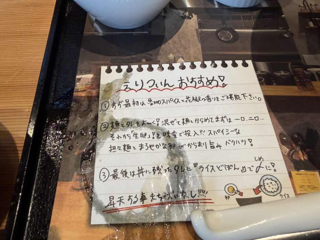 麺を食べ終わってからライスをドボンしたのですが、前述の通り味が少し弱いので、ご飯を投入しても味にパンチがなく、正直ちょっと食べ難い(^^;。