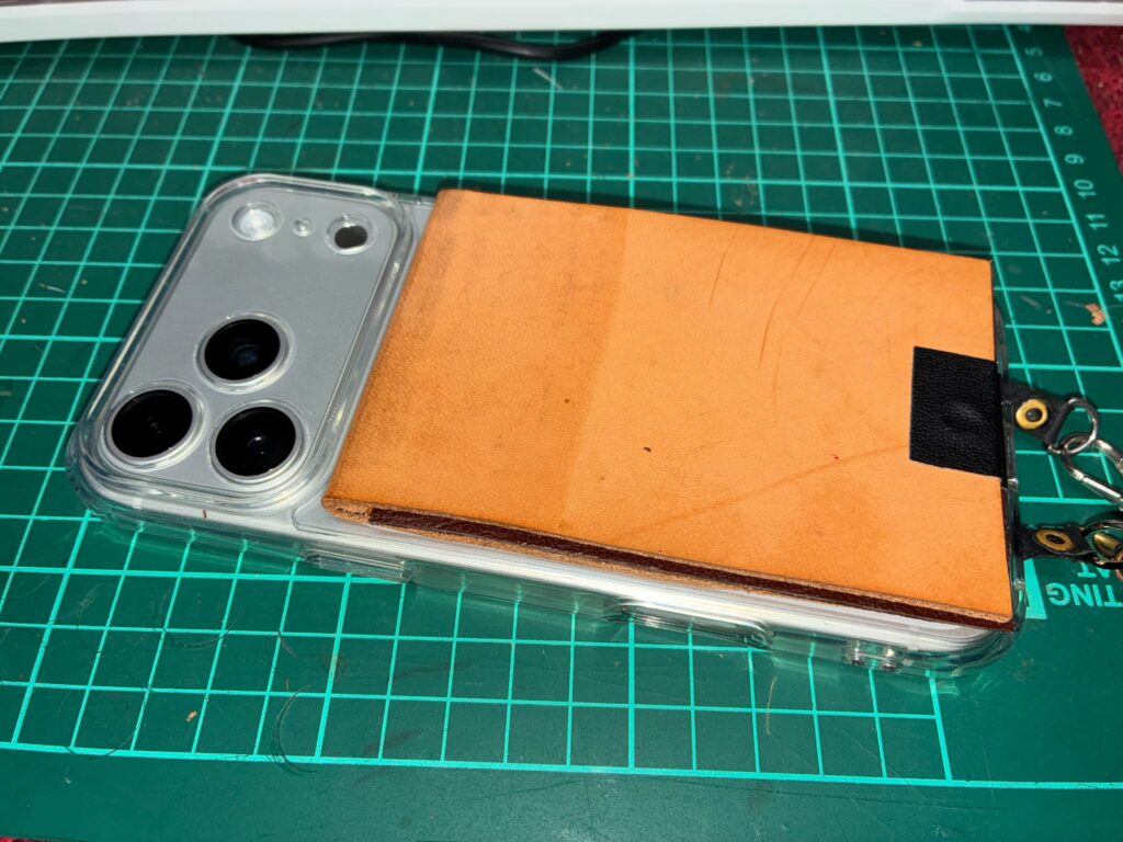 ただ、純粋に紙のメモ帳をくっつけただけでは簡単に濡れたり破けたりするので、革のケースで保護したい、という。