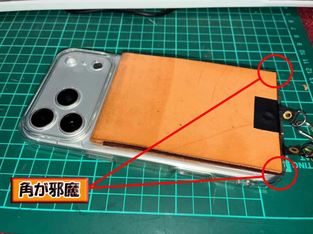 というわけで、初めて作った試作品、今日一日使ってみて思ったのが、まず本体の角が邪魔。